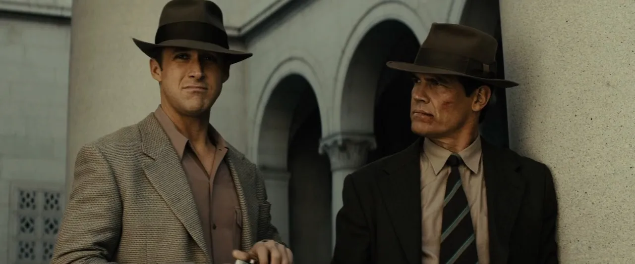 Starring: Josh Brolin as John O'Mara, Ryan Gosling as Sgt. Jerry Wooters, Sean Penn as Mickey Cohen, Nick Nolte as Bill Parker, Emma Stone as Grace Faraday, Anthony Mackie as Coleman Harris, Giovanni Ribisi as Conway Keeler, Robert Patrick as Max Kennard, Michael Peña as Navidad Ramirez, Mireille Enos as Connie O'Mara, Troy Garity as Wrevock, Holt McCallany as Karl Lockwood, Sullivan Stapleton as Jack Whalen, James Carpinello as Johnny Stomp, James Landry Hébert as Mitch Racine, Evan Jones as Neddy Herbert, Josh Pence as Darryl Gates, John Aylward as Judge Carter, Jack Conley as Sheriff Biscailuz, Jack McGee as Lt. Quincannon, Jon Polito as Dragna, Austin Abrams as Pete, Michael Bacall as Comanche, Lance Barber as Comanche, Scott Beehner as Club Figaro Reporter, Mick Betancourt as Detective Sgt. Will Hendricks, De'Aundre Bonds as Duke Del-Red, Mac Brandt as Bruiser, Ambyr Childers as Milk Skinned Blonde, Dennis Cockrum as Elmer Jackson, Maxwell Perry Cotton as Keeler's Son, Jonny Coyne as Grimes, Max Daniels as Jeffrey Clark, Lucy Davenport as Slapsy Maxie's Singer, Darrell Davis as Officer Wyler, Anthony De Longis as Burbank Jail Thug, Christopher Doyle as Edgar Beaumont, David Fleischer as City Hall Reporter, Lucas Fleischer as Club Figaro Reporter, Mickey Giacomazzi as Hatchetman, Dale Gibson as Burbank Cop, Derek Graf as El Dorado Guard, Tom Hallick as El Dorado Investor, Don Harvey as Officer Funston, Austin Highsmith as Patty, Matt Knudsen as Club Figaro Reporter, Anne Leighton as Crying Woman, Neil Koppel as Max Solomon, Michael C. Mahon as Citz Hall Reporter, Rick Marcus as Burbank Cop, Derek Mears as Bridge Goon, Cazimir Milostan as Desk Officer, Brandon Molale as Jimmy 'Bockscar' Knox, Anthony Molinari as Lorenzo Molinari, Michael Owen as Burbank Jail Thug, Riel Paley as City Hall Reporter, Michael Papajohn as Mike 'The Flea', Esther Scott as Letty, Haley Strode as Keeler's Wife, Yvette Tucker as Carmen Miranda, Wade Williams as Rourke, Jeff Wolfe as Giovanni Vacarezza, Danny Wynands as Grenade Goon, Eboni 'Chrystal' Adams as Dancer, Nadyla Blakemore as Dancer, Mandy Coulton as Dancer, Michelle Current as Dancer, Tiffany Daniels as Dancer, Monifa Ellis as Dancer, Hilary Fleming as Dancer, Scott Fowler as Dancer, Melanie Gage as Dancer, Asiel Hardison as Dancer, Michael Higgins as Dancer, Scott Hislop as Dancer, Jermaine Johnson as Dancer, Eva La Dare as Dancer, Stephanie Landwehr as Dancer, Tina Mayer as Dancer, Marcy McCusker as Dancer, Jacoby Mosby as Dancer, Chris Moss as Dancer, Jared Murillo as Dancer, Alycia M. Perrin as Dancer, Henry Chopper Platt as Dancer, Chandrae Rottig as Dancer, Dougie Styles as Dancer, Stephen Sayer as Dancer, Kelleia Sheerin as Dancer, Brett Sturgis as Dancer, Kevin James Sporman as Dancer, April Marie Thomas as Dancer, Forrest Walsh as Dancer, Lizzy Watts as Dancer, Charles Wiggins III as Dancer, Jason Williams as Dancer, Christopher Aber as Reporter (uncredited), Pamela Adamic as Drugged-Out Girl (uncredited), Michael Arturo as Dealer (uncredited), Kojo Asiedu as Bar Patron (uncredited), Robert T. Barrett as LAPD Cop (uncredited), Bill Blair as Casino Gambler (uncredited), Bob Bouchard as Movie Patron (uncredited), Freedom Bridgewater as Bartender (uncredited), Matt Callahan as Chinatown Shopper (uncredited), Greg Cannone as Slapy Maxie's Waiter (uncredited), Pamela Cedar as Gambler (uncredited), Michael Jay Copeland as Water pitcher waiter (uncredited), Clint Corley as Man at Union Station (uncredited), Eddie Davenport as Goon Gunman (uncredited), Seth Di Marco as Goon (uncredited), Isabel Dresden as Hedy Lamarr (uncredited), Jeremy Dunn as Gangster (uncredited), Ken Edling as Detective (uncredited), Chelsea Edmundson as Cigarette Girl (uncredited), Gray Ellis as Bar Patron (uncredited), Cathy Fielding as Bookmakers' Secretary (uncredited), Paige Flannery as Club Patron (uncredited), Marilyn Foley as Chinatown Shopper (uncredited), Leni Ford as Rich Widow (uncredited), Kristin Gagliardi as Slapsy Maxie's Patron (uncredited), Gill Gard as Slapsy Maxie's Doorman (uncredited), Nancy Gassner-Clayton as Caroler (uncredited), Debby Gerber as Plaza Runner (uncredited), Tanner Gill as Hookey Rothman (uncredited), Nick Gligor as Slapsy Maxie's Waiter (uncredited), Sly Green as Club Patron (uncredited), Louise Griffiths as Screaming Woman (uncredited), Frank Grillo as Russo (uncredited), Marie Grujicic-Delage as Fluzzy (uncredited), Rebecca Hancock as Club Patron (uncredited), Karen Harper as Caroler (uncredited), Steve Hernandez as Carmen Miranda Drummer (uncredited), Rebecca Honett as Cigarette Girl (uncredited), Todd Honeycutt as Caroler (uncredited), Courtney Howard as Club Patron (uncredited), Elizabeth Howell as Lady of the Night (uncredited), WBBrown II as LAPD (uncredited), Chris Jackson as Bar Patron (uncredited), Pat Jankiewicz as Nico (uncredited), David Johnson as Club Patron (uncredited), Sergio Kato as Officer Lane (uncredited), Faye Kelly as Business Woman (uncredited), Kristen Marie Kelly as Girl at Nightclub (uncredited), Jess King as Thug (uncredited), John William King as Casino Cowboy (uncredited), Olivia Ku as Suzie Wang (uncredited), Elaine Lockhart as Bar Patron (uncredited), Amy Mader as Chinatown Shopper (uncredited), Oscar Magana Jr. as Funeral Mourner (uncredited), Marlene Manes as Gangster Girl (uncredited), Nancy McCrumb as Betty Page (uncredited), Mason McCulley as Caroler (uncredited), Michael Lee Merrins as #1 Uniformed Officer (uncredited), Daniel Muller as Club Patron (uncredited), Kat Munday as Drugged Out Girl #2, Jim J. Mundy as Club Patron (uncredited), Nino Nava as Pilgrim (uncredited), Stephane Nicoli as LAPD Officer (uncredited), Michael Ouellette as Detective (uncredited), Veronica Parks as Christmas Lady (uncredited), Don Pecchia as Mob Boss (uncredited), Geoff Pilkington as Angry Guy in Park (uncredited), Josh Polizzi as Slapsy Maxie's Waiter (uncredited), Carolina Provvido as Drugged-Out Girl (uncredited), 