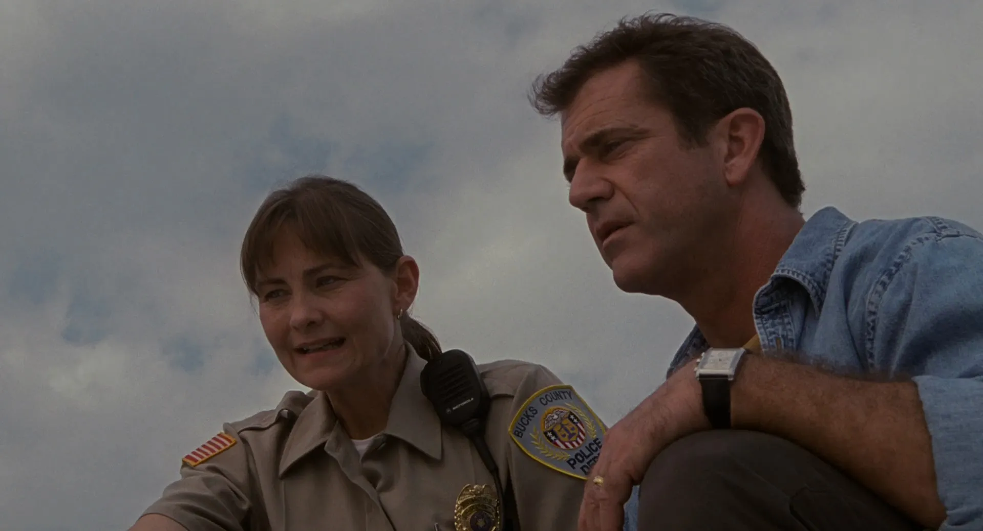 Starring: Mel Gibson as Graham Hess, Joaquin Phoenix as Merrill Hess, Rory Culkin as Morgan Hess, Abigail Breslin as Bo Hess, Cherry Jones as Officer Paski, M. Night Shyamalan as Ray Reddy, Patricia Kalember as Colleen Hess, Ted Sutton as SFC Cunningham, Merritt Wever as Tracey Abernathy, Lanny Flaherty as Mr. Nathan, Marion McCorry as Mrs. Nathan, Michael Showalter as Lionel Prichard, Kevin Pires as Brazilian Birthday Boy, Clifford David as Columbia University Professor, Rhonda Overby as Sarah Hughes, Greg Wood as TV Anchor, Paul L. Nolan as Mexico City Reporter (voice), Ukee Washington as Off-Screen TV Anchor (voice), Babita Hariani as Car Radio Voice (voice), Adam Way as Radio Eye Witness (voice), Angela Eckert as Soda Commercial Girl, Jose L. Rodriguez as Radio Host (voice), Paul Wilson as Soda Commercial Singer (voice), Thomas Griffin as Soda Commercial Singer (voice), Derek Mears as Alien on the Roof (uncredited), Chuck Pressler as Fireman (uncredited)