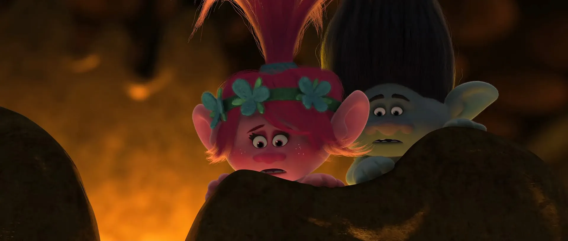 Starring: Anna Kendrick as Poppy (voice), Justin Timberlake as Branch (voice), Zooey Deschanel as Bridget (voice), Russell Brand as Creek (voice), James Corden as Biggie (voice), Gwen Stefani as DJ Suki (voice), Iris Dohrn as Baby Poppy (voice), Liam Henry as Young Branch (voice), Aino Jawo as Satin (voice), Caroline Hjelt as Chenille (voice), Ron Funches as Cooper (voice), Kunal Nayyar as Guy Diamond (voice), Glozell Green as Grandma Rosiepuff (voice), Meg DeAngelis as Moxie (voice), Ricky Dillon as Aspen Heitz (voice), Kandee Johnson as Mandy Sparkledust (voice), Christine Baranski as Chef (voice), John Cleese as Roi Gristle (voice), Christopher Mintz-Plasse as Prince Gristle (voice), Walt Dohrn as Cloud Guy/Smidge/Fuzzbert/Mr. Dinkles/Tunnel Troll/Wedgie Bergen (voice), Jeffrey Tambor as King Peppy (voice), Quvenzhané Wallis as Harper (voice), Rhys Darby as Bibbly (voice), Grace Helbig as Sugar Cookieloaf (voice), Curtis Stone as Bergen Guard - Todd (voice), Mike Mitchell as Darius / Vinny the Phone / Capt. Starfunkle / Spider / Wedgie Bergen #1 / Chad / Card (voice), Nina Zoe Bakshi as Bini Troll / Nora Troll (voice), Zoë Crawford as McKenzie Troll (voice), Riley Crawford as Sean Troll (voice), Ollie Mitchell as Olley Troll (voice), Emmett Mitchell as Anxious Troll Child / Keith (voice), Phoebe Dohrn as Bergen Girl (voice), Um Sang-hyun as King of The Greeks